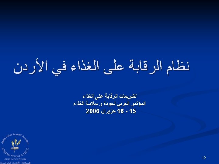 Jordan Food & Drug Administration A Presentation for The Arab Quality & Food Safety Conference June 15 -16, 2006 1