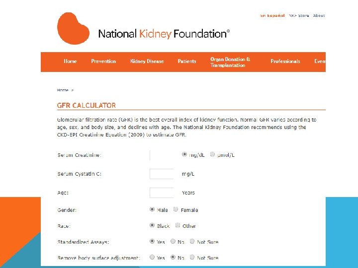 Estimación del Filtrado Glomerular: ecuación MDRD: Población de origen • 1628 pacientes con ERC • FG: 13 -55 ml/min (media: 39. 8) • Urea: 32 16 mg/dl • Creatinina media: 2. 3 mg/dl • Cl. Creatinina: 48. 6 ml/min/1. 73 m 2 • Edad: 51 13 años • 60% hombres • 88% raza blanca • 6 % DBT – 32% glom. – 22% PKD • PAM: 99 mm. Hg • Peso: 80 17 kg • Sup Corp: 1. 91 m 2 Levey et al. , Ann Int Med, 1999