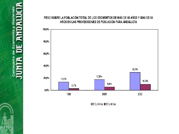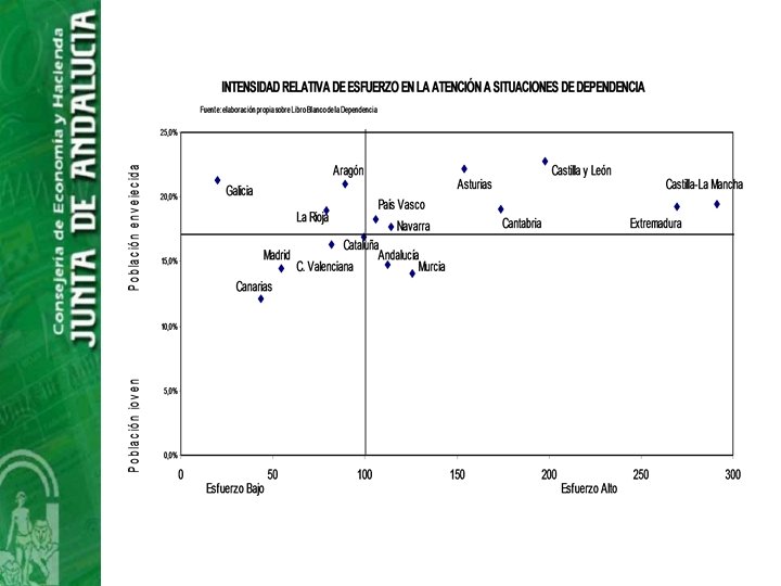 El coste en Andalucía • El esfuerzo financiero esta por determinar: perfilar definitivamente los servicios y prestaciones así como las condiciones de participación de los beneficiarios. • Si en Andalucía se dedicase un 0, 63 % PIB actual a gasto público en dependencia el importe sería de 741, 0 Millones de € financiados al 50 % AGE -JA • Existe una gran variabilidad a la hora de las estimaciones de financiación en función de los supuestos sobre tipo de prestación y coste.