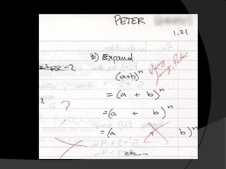 Fallas en la inducción en Matemáticas � Todo alumno de Ingeniería, en algún momento de su carrera, escribe en algún procedimiento: � Inmediatamente sus profesores le corrigen: