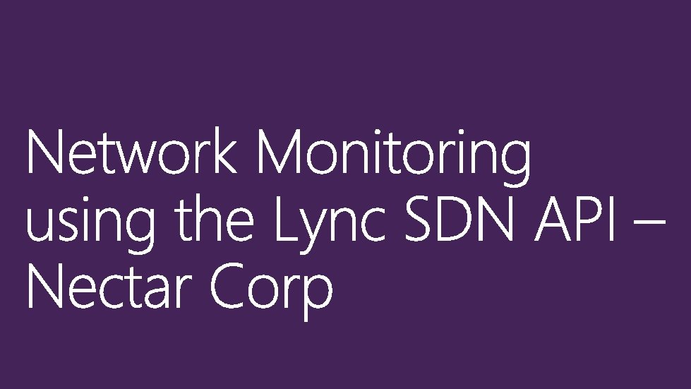 Agenda The Lync SDN API Lync network monitoring – how a partner uses the SDN API A Service Provider’s view: the value of automated diagnostics for a Managed Lync service offering