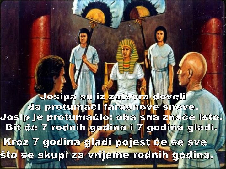 Kad je faraon čuo kako Josip mudro govori postavio ga je za upravitelja nad cijelim Egiptom.