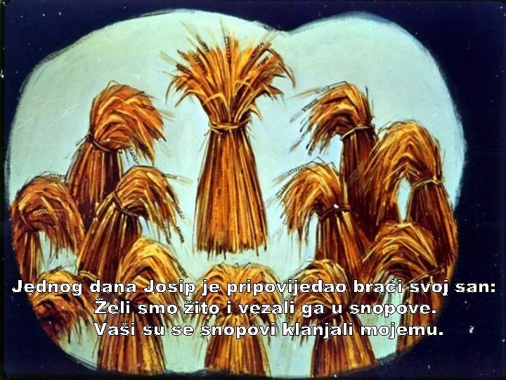 Usnio sam i sunce, mjesec i jedanaest zvijezda koji su mi se duboko klanjali. Braća su bila ljubomorna još više jer su shvatili da Josip sanja kako će postati njihov vladar.
