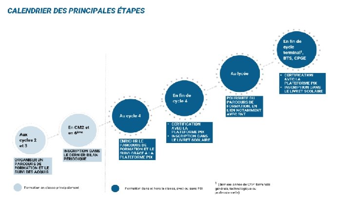 CRCN Principales étapes de mise en œuvre institutionnelle • JO du 01/09/2019 : parution du décret et des arrêtés Décret n° 2019 -919 du 30 août 2019 relatif au développement des compétences numériques dans l'enseignement scolaire, dans l'enseignement supérieur et par la formation continue, et au cadre de référence des compétences numériques Arrêté du 30 août 2019 relatif à la certification Pix des compétences numériques définies par le cadre de référence des compétences numériques mentionné à l'article D. 121 -1 du code de l'éducation Arrêté du 30 août 2019 relatif à l'évaluation des compétences numériques acquises par les élèves des écoles, des collèges et des lycées publics et privés sous contrat • Document d’accompagnement sur eduscol • Ressources pédagogiques (par compétence / par discipline)