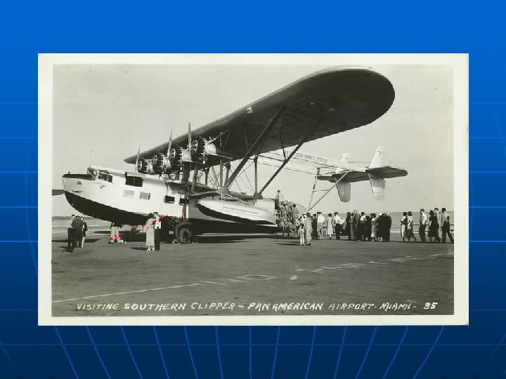Arrival of the first commercial transatlantic passenger flight Boeing 314 NC 18605 Dixie Clipper arriving at Lisbon from Port Washington, NY June 29, 1939 carrying 22 passengers and 12 crew members.
