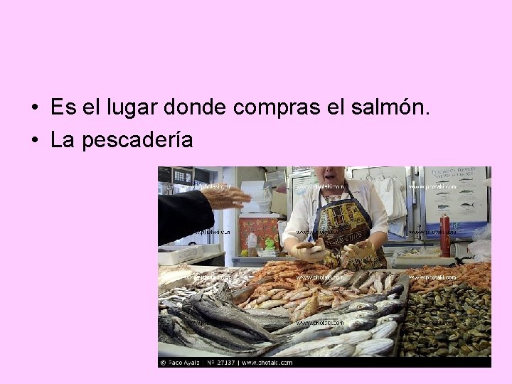 • Es el lugar donde compras el salmón. • La pescadería