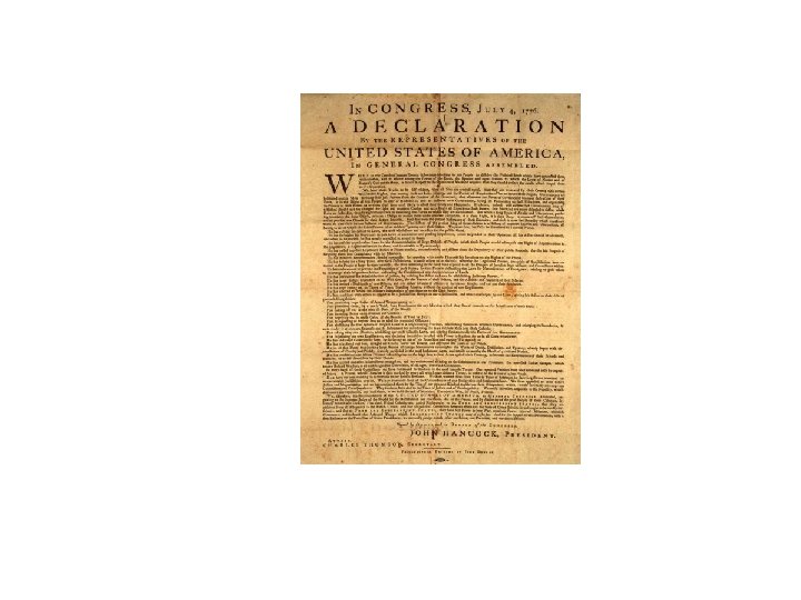 • The Declaration of Independence: (115) – July 4, 1776, the Second Continental Congress adopted the Declaration of Independence • The Declaration of Independence’s immediate purpose was to win support for Independence here and abroad • The Declaration detailed the misdeeds of King George III toward the colonists