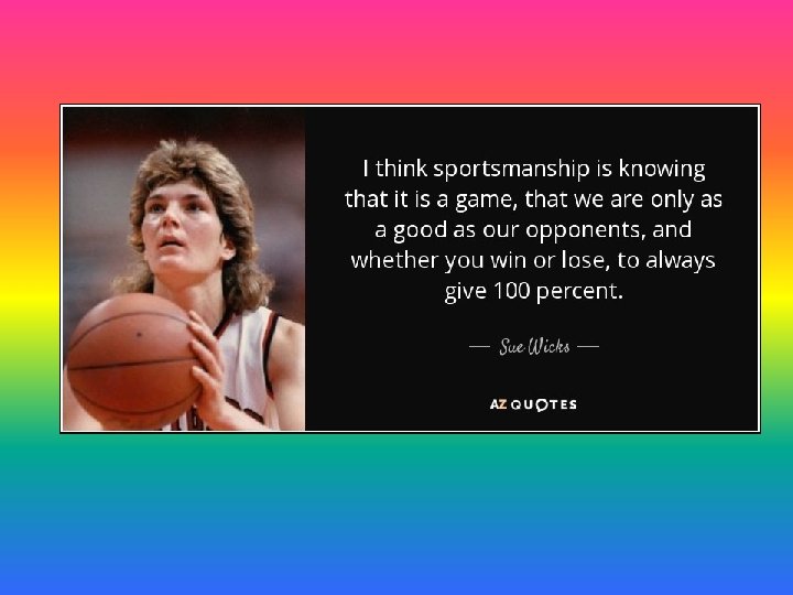 HOW CAN YOU SHOW SPORTSMANSHIP? • Shake hands with the people you are playing with and any coaches, referees, judges or umpires • Cheer for everyone as well as your teammates • Follow the rules • Don’t compare yourself to others