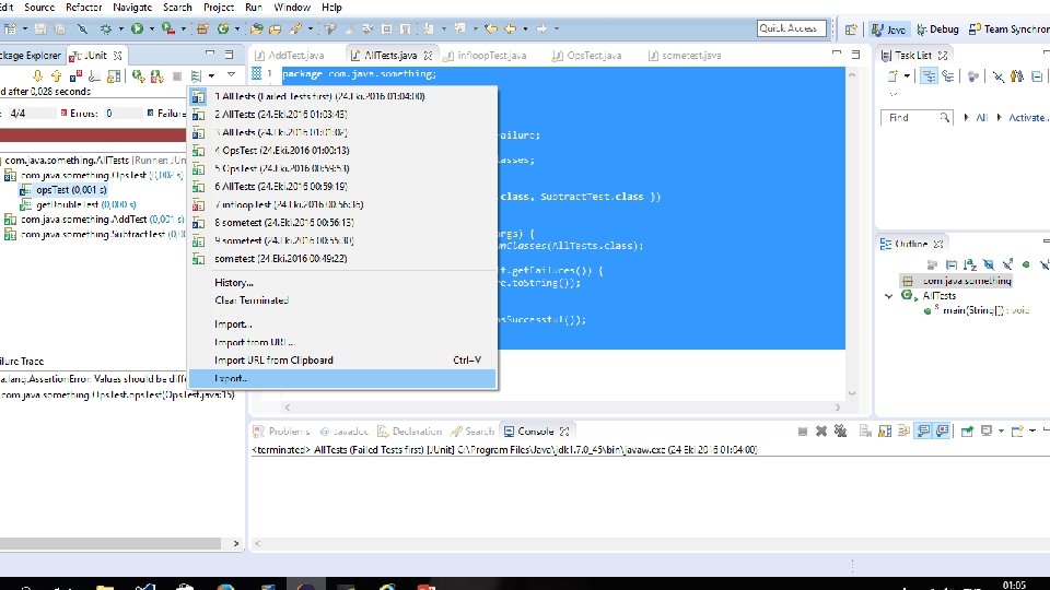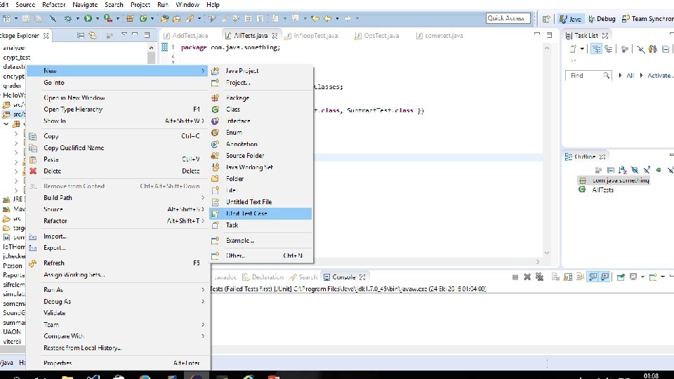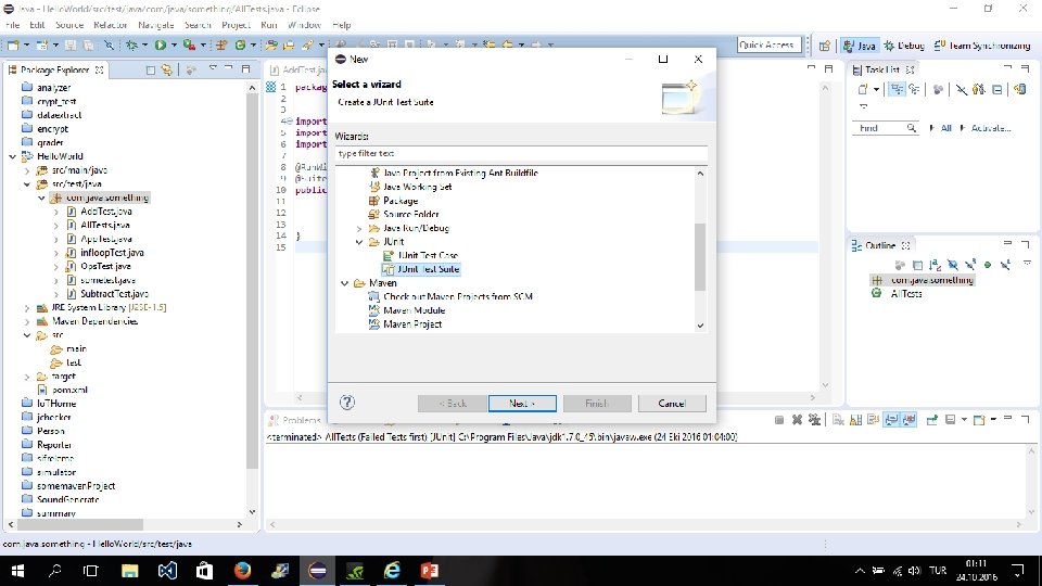 Test. Suite • Create a collection of tests and run them together • Right Click on the package of test and New>Other> Test Suite • Select the tests to be added to that test Suite