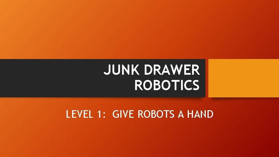 JUNK DRAWER ROBOTICS LEVEL 1: GIVE ROBOTS A HAND