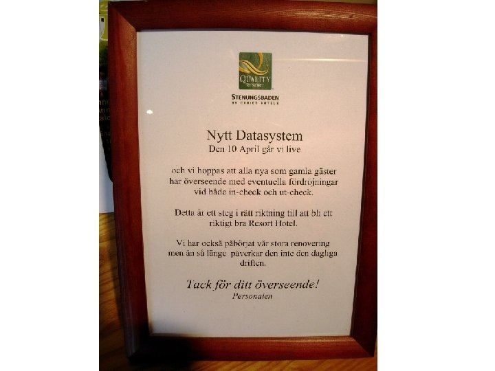 Skyll på användaren 2: Passmyndigheten • ”Flera har svimmat på arbetsplatsen och dagligen finns det de som drar sig undan till det speciella ”bryta-ihoprum” som ordnats och brister ut i gråt. ” • Men: • ”Vi har gjort objektiva tester som visar att det nya datasystemet i huvudsak fungerar bra, säger Lars Karlsand som ansvarar för passfrågor på Rikspolisstyrelsen. ”