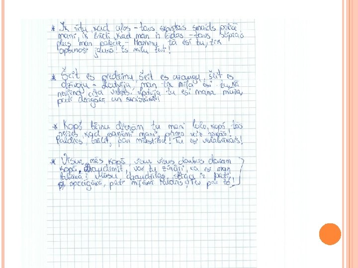 Mīļvēstulīšu sacerēšana Dzimtās valodas dienā, atsaucoties UNESCO LNK aicinājumam atzīties mīlestībā savā dzimtajā valodā.