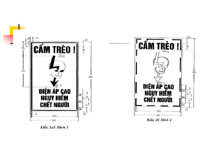 Chương 7. CÁC BIỆN PHÁP AN TOÀN KHÁC (Phòng ngừa rủi ro) 2) § Đảm bảo khoảng cách, bao che, rào chắn các bộ phận mang điện: Đảm bảo khoảng cách: Để tránh va chạm với bộ phận mang điện, quy định: