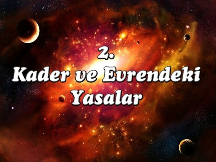 Allah’ın evrene koyduğu yasaları 3 kısımda inceliyoruz. 1. Fiziksel yasalar 2. Biyolojik yasalar 3. Toplumsal yasalar