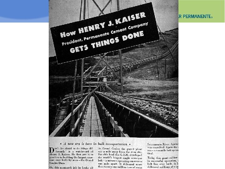 Kaiser Permanente Program Founded: 1945 Largest non-profit HMO 8. 3 million members Headquarters Oakland, CA 30 hospitals 431 medical offices Northwest Region Northern California Southern California Colorado Region Ohio Mid. Region Atlantic Region Georgia Region Hawaii Region 141, 909 employees, 12, 012 physicians
