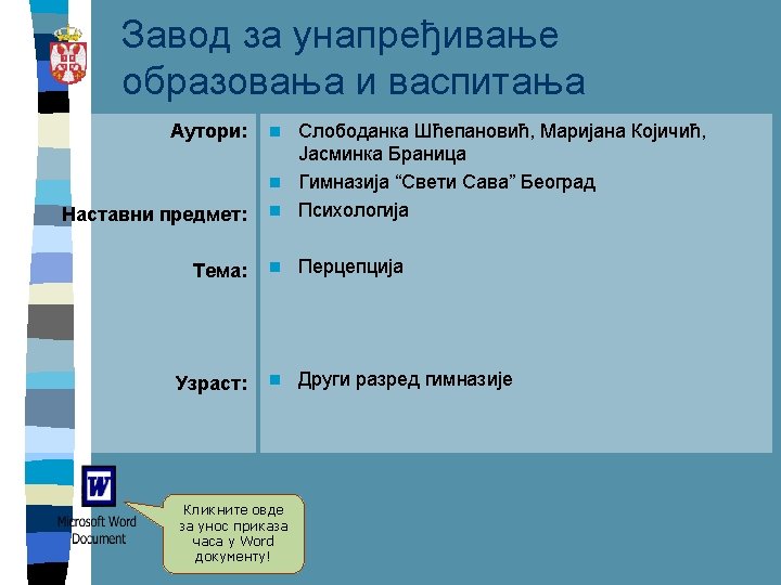 Dijalog / Diskusija n n n n Uvodna pitanja: 1. Na konkretnim primerima navedite razliku između čulne i razumske spoznaje 2. Koje su granice čulnog saznanja 3. Prilikom donošenja zaključka da li kombinujete različite izvore saznanja 4. Postoji li manipulacija ljudskim opažajima od strane medija (kojih, u kojim prilikama i u koje svrhe) 5. Navedite primere neverbalne komunikacije i njenog značaja za društvenu situaciju 6. Šta prvo opažate prilikom susreta sa (ne)poznatom osobom 7. Kako lideri populističkih pokreta zloupotrebljavaju mase putem principa funkcionisanja čulnog opažanja