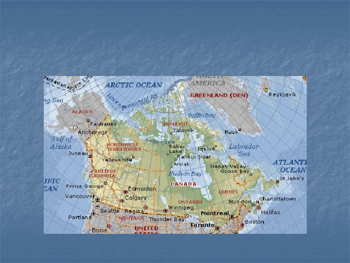n n površinom druga država svijeta = 9 984 670 km² slaba naseljenost → 33 390 000 stan. (2007. ) koncentracija stanovništva uz granicu sa SAD-om anglofonski i frankofonski dio (Quebec)