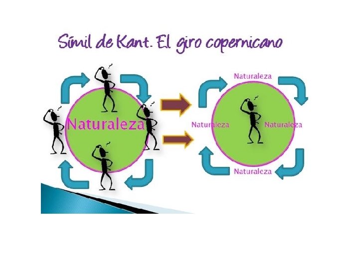 v Dos preguntas de Kant en la CRPu a raíz de los juicios sintéticos a priori: 1. ¿Son posibles los juicios sintéticos a priori para la Metafísica? 2. Cómo podemos saber algo a priori acerca de la realidad? LA REVOLUCIÓN / GIRO COPERNICANO DE KANT* Premisa inicial de Kant: Si la necesidad y universalidad de nuestros conocimientos no procede de la experiencia, tenemos que concluir que son los OBJETOS los que se adecúan al SUJETO que conoce. TRES DIFERENCIAS DE KANT CON LAS TEORÍAS EPISTEMOLÓGICAS ANTERIORES (Racionalismo y empirismo) Primera diferencia: a. Teorías epistemológicas anteriores Eran realistas = pretendían conocer el OBJETO = una realidad en sí, externa al sujeto b. Kant Considera que hay que centrar el proceso del conocimiento en el SUJETO 1. No que el sujeto (sol) gire en torno al objeto (Tierra) = Geocentrismo 2. Sí que el objeto (Tierra) gire en torno al sujeto (sol) = Heliocentrismo CONCLUSIÓN : 1. Ya no es la realidad la que impone sus esquemas a la mente 2. Ahora es la mente la que impone sus esquemas a la realidad *A Copérnico se le ocurrió “mover” la Tierra y hacerla girar en torno al sol. Kant hace lo mismo respecto el objeto y el sujeto