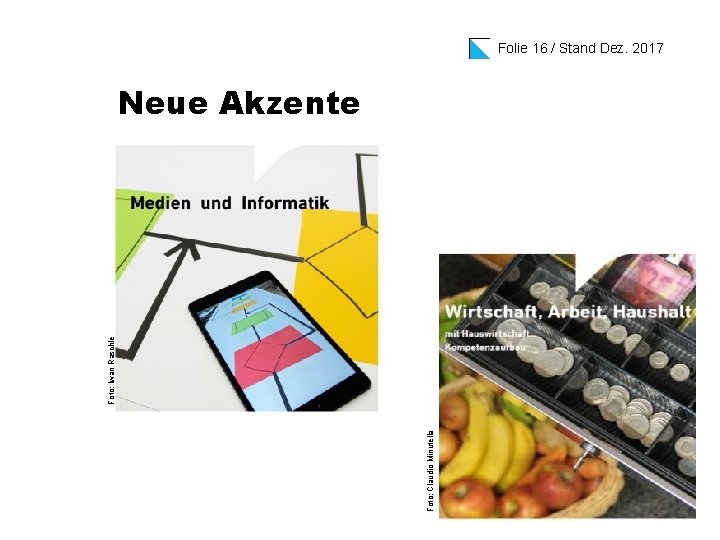 Foto: Claudio Minutella Foto: Iwan Raschle Folie 16 / Stand Dez. 2017 Neue Akzente