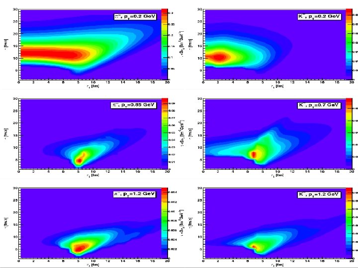 The pion emission function for different p. T in hydro-kinetic model (HKM) The isotherms of 80 Me. V is superimposed.