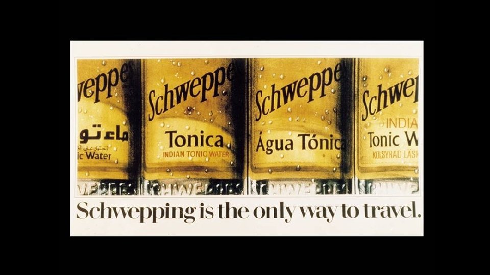 Schweppes continued to advertise during the 1940 s, even though the product was unavailable, thus reassuring the public that their brand would be back one day.