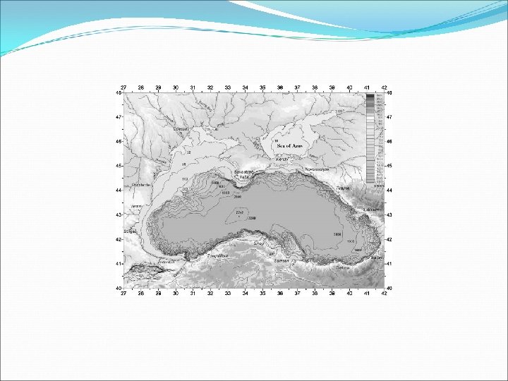KARADENİZ Yarı-kapalı bir iç deniz, Yüzölçümü : 422. 189 km² (Azak Denizi ile birlikte 459. 054) Genişliği: batıdan doğuya yaklaşık 1700 km, kuzeyden güneye ise 250 ila 600 km. Derinliği Ortalama 1. 272 m. , en derin yeri İnebolu’nun kuzeyindeki 2. 212 m. lik kısımdır. Karadeniz havzası suları : 536, 969 km 3.