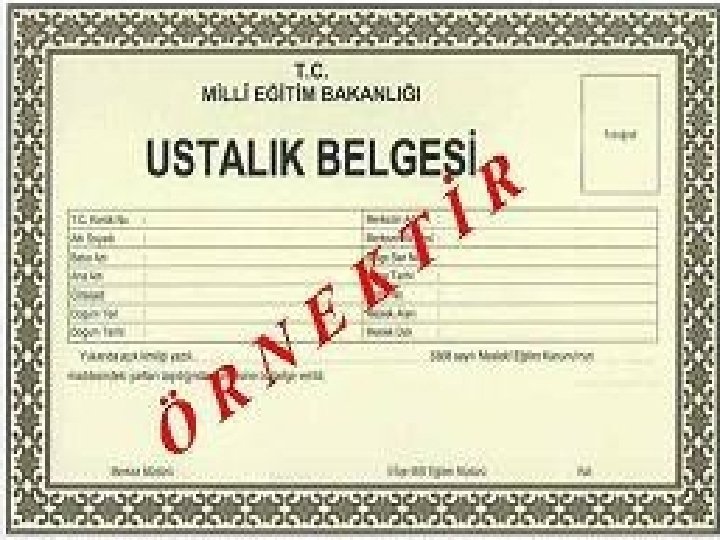 n Bir kişinin kapsamda bulunan 153 meslek dallarından birinde kendisine ait işyeri açabilmesi için: ya kendisinin "Ustalık Belgesi" olmalı yada ustalık belgesi sahibi birini işyerinde çalıştırıyor olmalıdır. . Aksi takdirde kendisine ait işyeri açması mümkün değildir. n Ayrıca işyerinde çırak çalıştırabilmesi içinde kanunen ya kendisinin "Usta Öğreticilik Belgesi" olmalı yada usta öğretici belgesi sahibi birini yanında çalıştırıyor olmalıdır. Ustalık Belgesi ve Usta Öğreticilik Belgesi olmayan işyeri sahipleri Bu belgeleri almak için kendilerine en yakın Mesleki Eğitim Merkezlerine başvuruda bulunmalıdırlar.