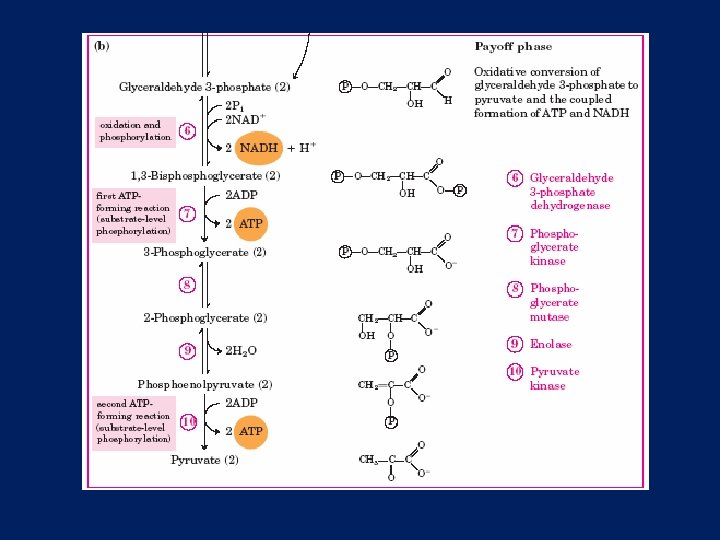 Pentingnya intermediate yang ter-fosforilasi 1. 2. 3. Karena membran plasma umumnya kekurangan transporter untuk gula terfosforilasi, sehingga intermediate glikolitik tidak dapat meninggalkan sel. Setelah fosforilasi awal tidak perlu energi untuk menahannya dalam sel. Kelompok fosforil sangat penting untuk mempertahankan energi metabolik yang berasal dari pemecahan ATP glucose 6 phosphate 1, 3 -bisphoglycerate & phosphoenolpyruvate ATP Kelompok fosfat (ATP, ADP, intermediate terfosforilasi) berikatan dengan Mg 2+ kebanyakan aktivasi enzim glikolitik membutuhkan Mg 2+