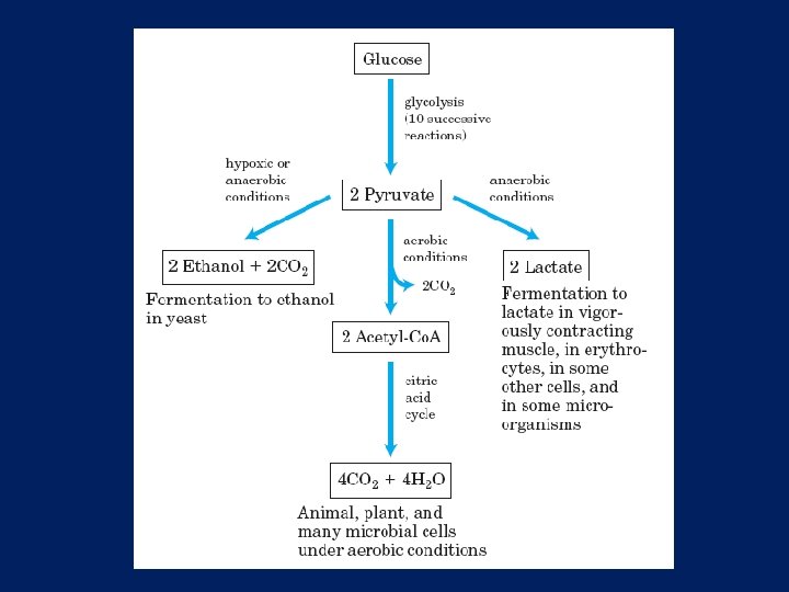 n Sisa Energi dalam piruvat Glikolisis hanya melepaskan sebagian kecil energi dari keseluruhan energi yang tesedia dalam molekul glukosa; dua molekul piruvat yang terbentuk dalam glikolisis masih mengandung sebagian besar energi potensial glukosa, energi tersebut dapat dikeluarkan oleh reaksi-reaksi oksidasi dalam siklus asam sitrat dan fosforilasi oksidatif.