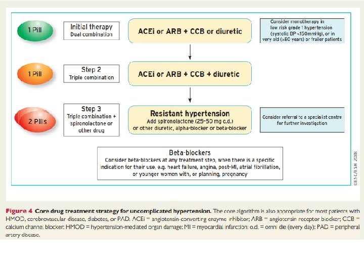 Dirençli hipertansiyon • Uygun yaşam tarzı tedbirlerini uyguluyor olmasına • Bir diüretik ve farklı gruplara ait iki antihipertansif ilaç (toplam 3 ilaç) alıyor olmasına (yeterli dozlarda) • Mineralokortikoid reseptör antagonisti içermek zorunda değildir. • Hedef KB’ye (<140/90 mm. Hg) ulaşılamaması dirençli hipertansiyon olarak tanımlanır.