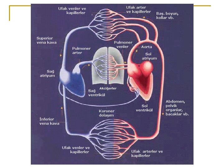 KARDİYAK OUTPUT n Atım hacmi q n Akciğerlere Kalp hızı q n 60 -90 ml Baş ve kollardan Akciğer lerden 60 -90 vuru/dk Kardiyak indeks: q Baş ve vücuda CO / Yüzey alanı Gövde ve bacaklardan