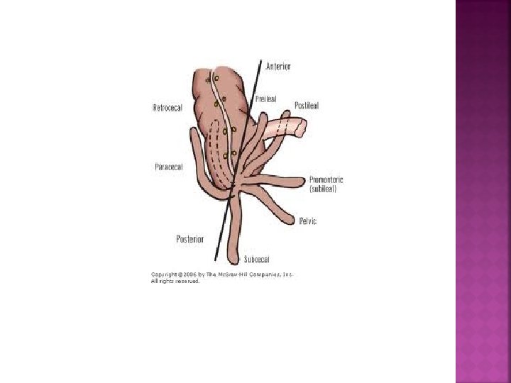 PATOFİZYOLOJİ Apandiksin retroçekal, subseröz veya intrapelvik yerleşiminde, paryetal periton irritasyonu minimal olduğundan, bu hastalarda fizik muayene bulguları atipiktir.