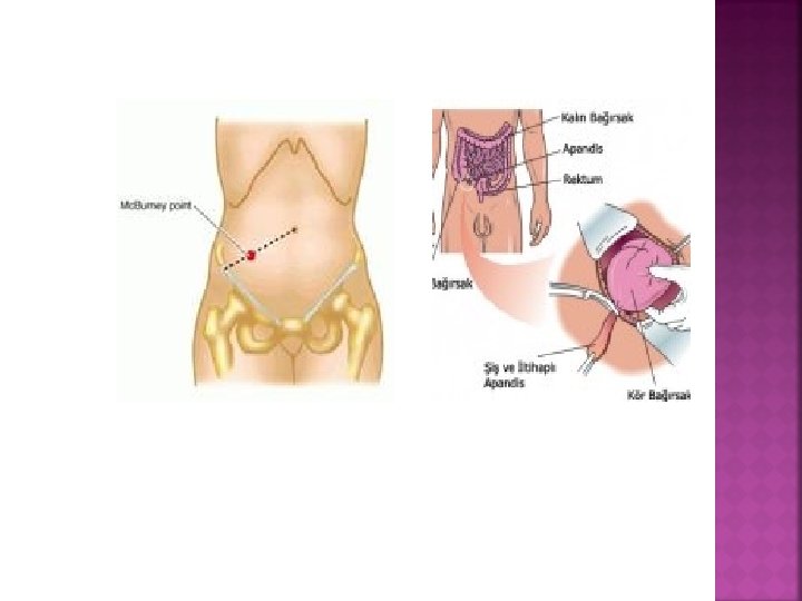 PATOFİZYOLOJİ Apandiks bölgesindeki paryetal peritonun inflamasyona katılması, daha önce göbek çevresinde hissedilen ve tam olarak tanımlanamayan ağrının karnın sağ alt kadrana lokalize olmasına neden olur.