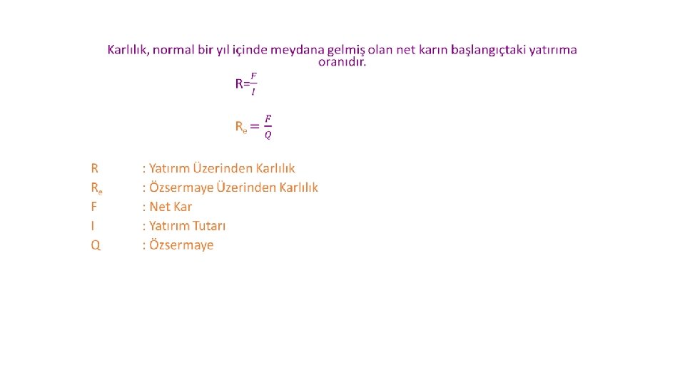 • İç karlılık projeye yatırılan sermayenin, o projenin hayat süresi boyunca üzerinden taksitler halinde hangi oran üzerinden ödeneceğini gösteren orandır. • Yatırım kararı, belirli bir projenin iç karlılık oranının, yatırılan sermayenin ödenmesini gösteren en asgari kabul edilebilir bir oranı ifade eden sınır bir oran ile karşılaştırılmasından sonra alınır. • Alternatif projeler arasında seçim yapmak gerektiği hallerde en yüksek iç karlılık oranını gösteren proje seçilir.
