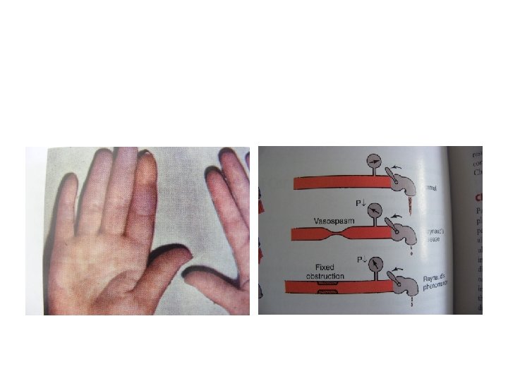 Raynaud • Soğuk ve Emosyonel stresle el ve ayak parmaklarında görülen solukluk , siyanoz ve hiperemi atağı. • %11 civarında görülür • 15 -45 yaş arasında • TANI • Segmental basınç ölçümü (10 mmhg dan büyük) • Parmak basıncının <70 mmhg, 2 parmak arası fark 15 mm. Hg • 20 saniye 4 derecede beklenir. 10 dak sonra normal ısıya döner. 30 dak geçer