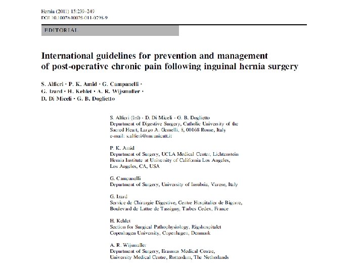 Postoperatif Ağrı Parviz K. Amid, M. D. , F. A. C. S. , F. R. C. S. Professor of Clinical Surgery David Geffen School of Medicine at UCLA Director, Lichtenstein Hernia Institute at UCLA