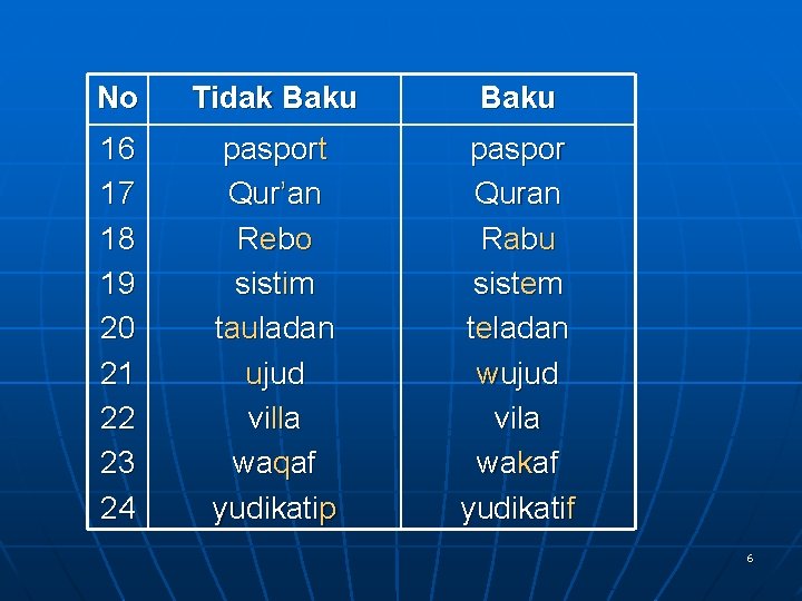 Contoh Penulisan Kata Dasar No 1 2 3 4 5 6 7 Tidak Baku abjat B is cabe dekoratip extra formil gisi Baku abjad bus cabai dekoratif ekstra formal Gizi 4