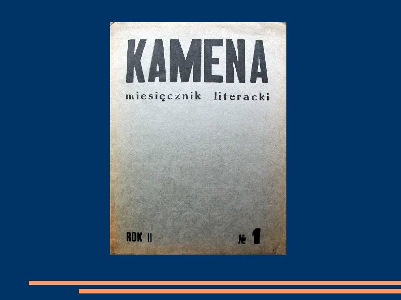 KAMENA We wrześniu 1933 r. wraz z grafikiem Zenonem Waśniewskim założył w Chełmie „Kamenę". Do września 1939 r. ukazało się 50 zeszytów. „Kamena" była pismem poświęconym poezji i literaturze. Jaworski jako redaktor nawiązał bliskie kontakty z wieloma literatami, udostępniając łamy pisma poetom już uznanym i debiutantom. Wprowadził dział tłumaczeń, który obejmował nie tylko przekłady poetyckie z modnych wówczas języków zachodnich, ale również ze słowiańskich. W „Kamenie" często ukazywały się wiersze poetów ukraińskich, białoruskich, słowackich, czeskich, bułgarskich, litewskich. Do 1939 r. zamieszczono na jej łamach utwory oryginalne i przekłady 160 autorów. Pismo było wydawane ze składek zbieranych wśród nauczycieli chełmskich.