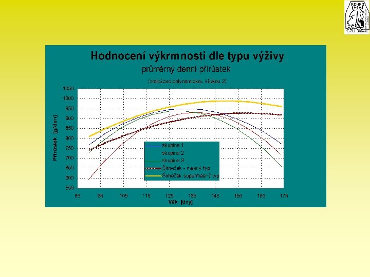 Exterriérový profil Důležité je upozornit na kombinační závislostí věk, hmotnost, konverze a denní příjem krmiva vyjádřené: - v co nejkratších časových údobích ( týden ) – lze tak odhalit několik akceleračních a depresivních vln za dané období, - po polynomické úpravě dochází k eliminaci plus a minus variant průběhu růstové křivky.