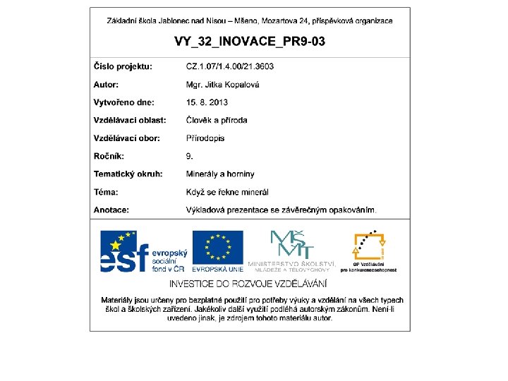 ZDROJE: učebnice: ŠVECOVÁ, Milada a Dobroslav MATĚJKA. Přírodopis 9: učebnice : pro základní školy a víceletá gymnázia. 1. vyd. Plzeň: Fraus, 2007, 128 s. ISBN 978 -807 -2385 -874.