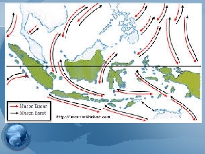 a. Iklim muson Dipengaruhi oleh angin musim yang berubah setiap periode waktu tertentu. Biasanya satu periode perubahan adalah enam bulan. Angin muson ada 2 macam yaitu: 1. Angin muson timur: bergerak pada bulan April. Oktober bergerak dari Australia menuju Asia. 2. Angin muson barat : bergerak pada bulan Oktober –April bergerak dari Asia menuju Australia.