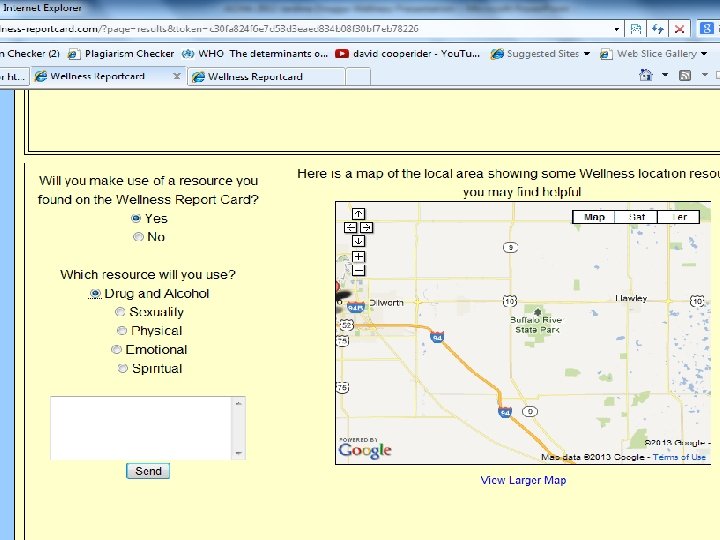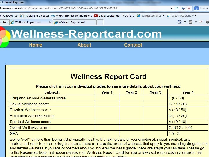 Student Scores Overall Wellness Score in each Wellness Dimension Drugs/Alcohol Sexual Wellness Emotional Wellness Physical Wellness