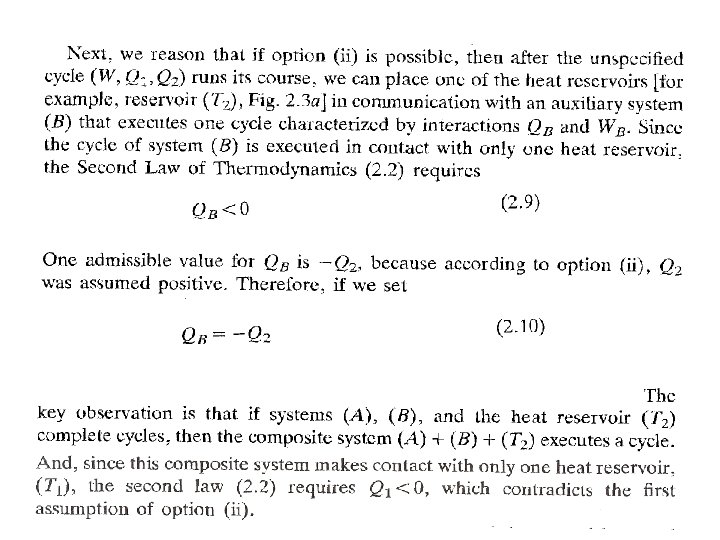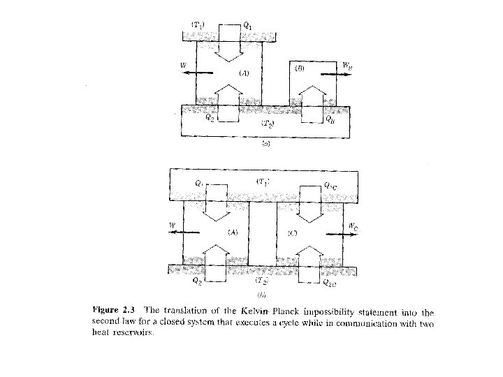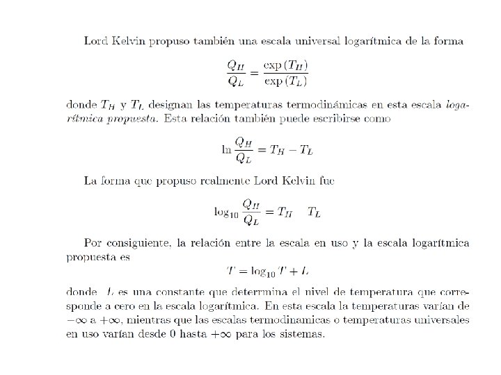 Kelvin-Plank: Toda transformación cíclica cuya única finalidad sea absorber calor de un cuerpo o fuente térmica a una temperatura dada y convertirlo íntegramente en trabajo, ES IMPOSIBLE Clausius: Toda transformación cíclica cuya única finalidad sea transferir una cierta cantidad de calor de un cuerpo frío a uno caliente, ES IMPOSIBLE