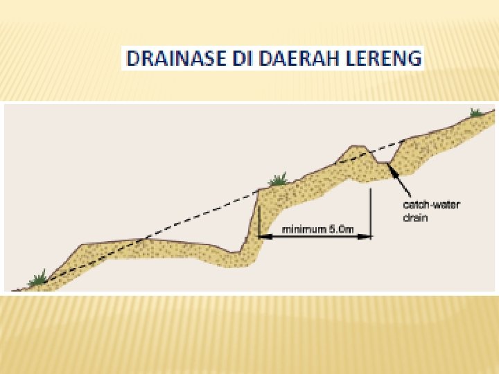 • Periksa kemiringan tanah di lapangan (i lapangan) Sta : 5 + 600 ; t 1 : 6 + 000 ; t 2 = = 8, 950 8, 300