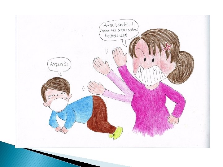 8 DAMPAK NEGATIF DARI KEKERASAN TERHADAP ANAK (Megawangi, Wiyono, Puspitawati 2006) 1. MENUMPULKAN HATI NURANI 2. MEMBUAT ANAK TERLIBAT PERBUATAN KRIMINAL 3. MEMBUAT ANAK GEMAR MELAKUKAN TEROR DAN ANCAMAN 4. MEMBUAT ANAK MENJADI PEMBOHONG 5. MEMBUAT ANAK RENDAH DIRI/MINDER 6. MENIMBULKAN KELAINAN PERILAKU SEKSUAL 7. MENGGANGGU PERTUMBUHAN OTAK ANAK Illustration: Gregory Nemec From "Teachers College Reports, " Columbia University, Vol. 3, No. 1, Winter 2001 8. MEMBUAT PRESTASI BELAJAR ANAK RENDAH