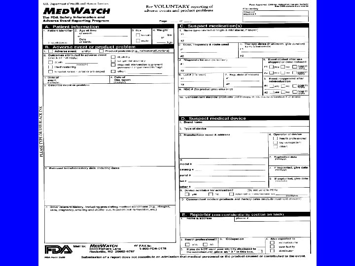 What Is Redacted from Adverse Event Reports? Ø All identifying information of Non-FDA people and places Names and addresses Where consumer purchased product Ø Medical Records Insurance Information Autopsy Numbers Signatures / Initials Date of Birth