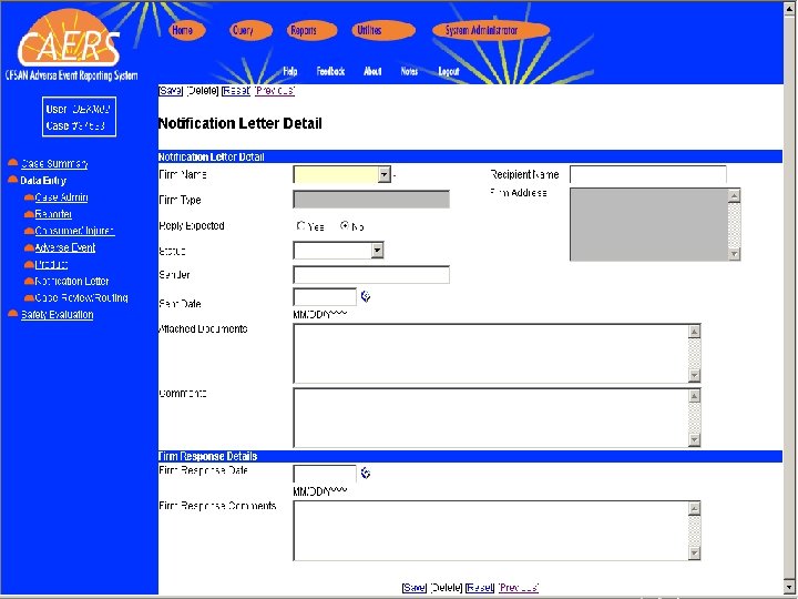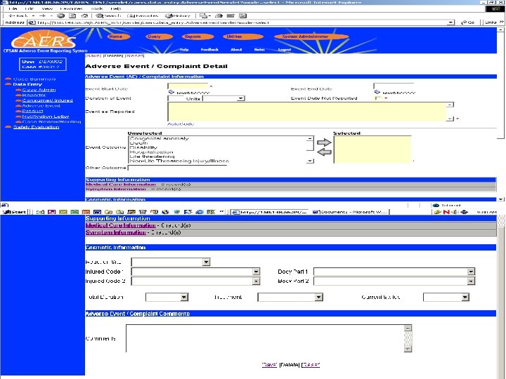 WHY is the FDA Developing CAERS? CAERS Ø Recognized Need for an Improved System Ø Combined Old Computer Systems Ø Security Ø International Adverse Events Ø Counter Terrorism Tool
