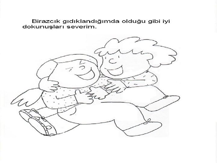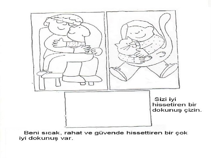İyi Dokunma • Sevdiğin kişilerin sarılması ve öpmesi güzel bir şeydir – Uyandığında annenin sana sarılması ve öpmesi – Babanın iyi geceler dilemek için sarılması ve öpmesi – Anneanne ve dedenin ziyarete geldiklerinde herkesin birbirini kucaklaması ve öpmesi
