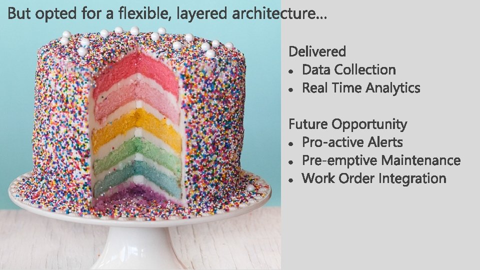 • January – POC, Architecture Reviews, Contract Negotiations • February/March – Build and Testing • April – Parallel Systems Cutover • > 56 million Device Reads processed • May – Decommission Legacy Solution