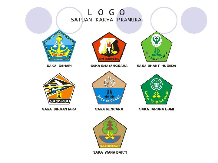 l Nama ¡ Saka diberi nama pahlawan bgs, tokoh wayang, atau nama lain yg dpt beri motivasi kpd angtnya, sesuai dg jenis saka ybs. Contoh : saka dirgantara adisucipto ¡ Krida sbg bagian dr saka diberi nama menurut kegiatan angt krida tsb ¡ Bila dlm satu saka terdpt bbrapa krida yg sama, maka krida tsb dpt diberi nmr urut, contoh krida peternakan 1, krida peternakan II, dst ¡ Nama-nama krida diatur dlm PP masing-masing Saka q Anggota q Angt saka adlh prmka penegak bantara, penegak laksana dan pandega dr gudepnya q Pramuka penggalang, calon penegak dn calon pandega dpt mengajukn diri sbg angt saka dg seijin pembina gudepnya, dn disyaratkn agar dlm wkt 12 bln setelah jd angt saka diusahakn telah dilantik sbg prmuka penggalang terap, penegak bantara, atau pandega di gudepnya